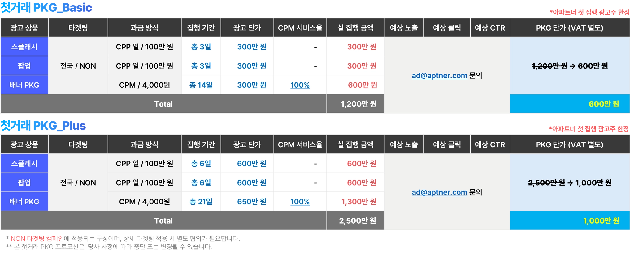 광고 지면의 구성(스플래시/팝업/배너)에 대한 변경은 협의를 통해 가능합니다.